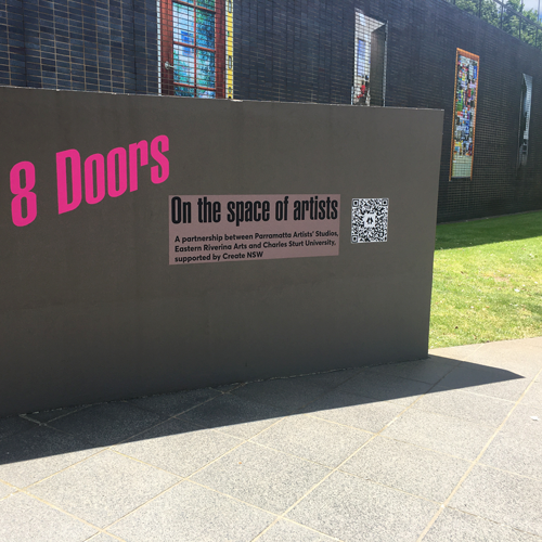 8 Doors is a collaborative exhibition outcome from the project: On the space of artists, a partnership between Parramatta Artists’ Studios (PAS), Eastern Riverina Arts and Charles Sturt University (CSU). This project is centred on exchange and conversations around the artist studio as a social, conceptual and practiced space and how this translates between Western Sydney and the Riverina region. On the space of artists brings together PAS artists Lill Colgan, Kirtika Kain and Gillian Kayrooz with Wagga-based artists Gregory Carosi, Alice Peacock and Pat Ronald, facilitated by Hayley Megan French (PAS) and James Farley (CSU).